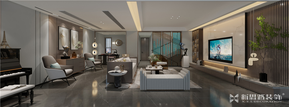 楼盘小区:协信星麓原 面积:底跃330平方 风格:现代轻奢 设计说明 此设计为星麓原洋房底跃,面积330平方,常驻5口人家,负一楼层高为5860毫米,可以做现浇设计成两层,负二楼设计