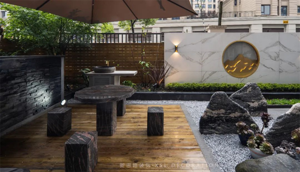 苍松端景、茵茵苔藓,与翻腾汹涌的浪花图景,也一同自然而然地为东方情调添下几笔注角,氤氲的雅韵萦绕而出。