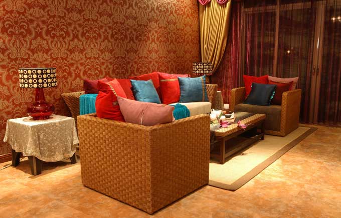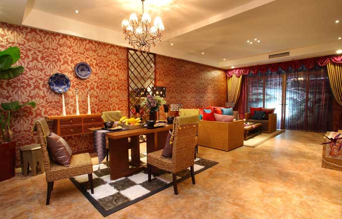 经典浓重的色彩,硕大的花纹图案,适当比例的运用,自然风格家私饰品的点缀,引领出高贵、新颖、豪华的东南亚风格。