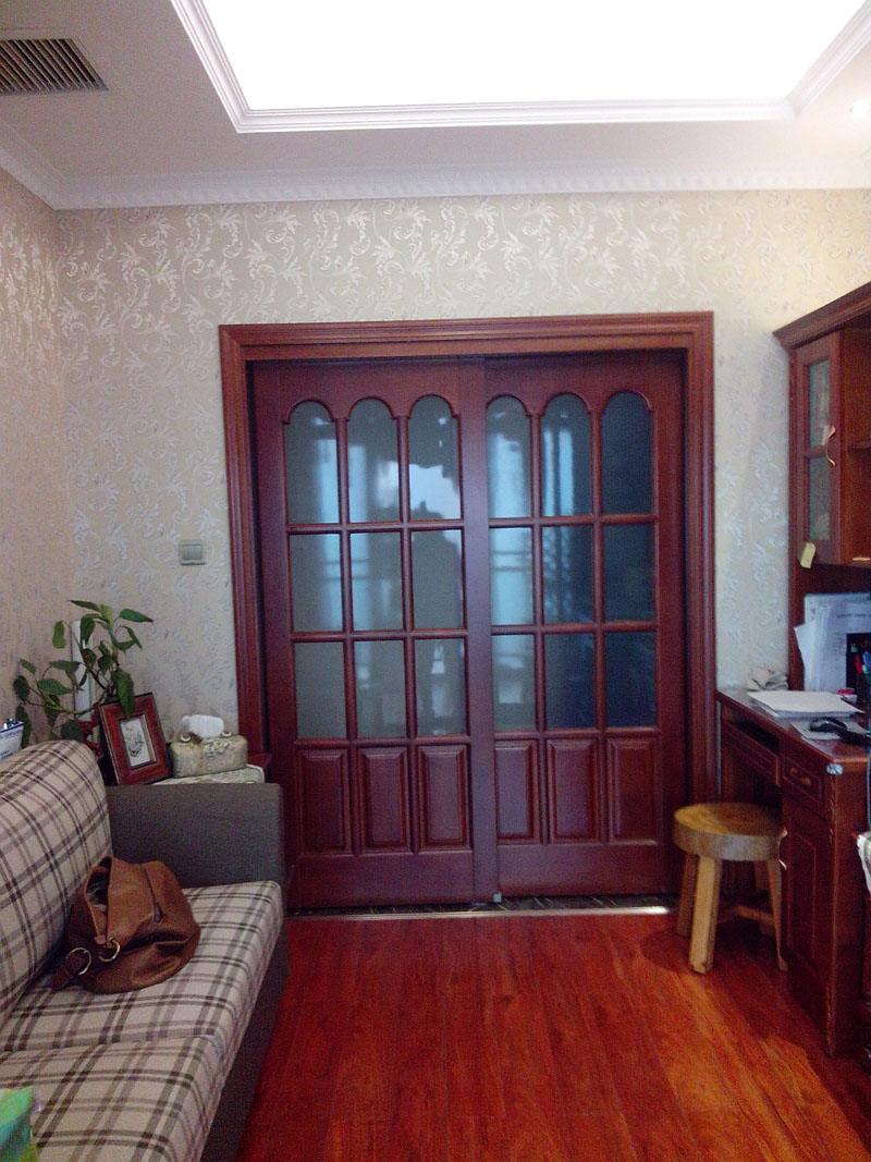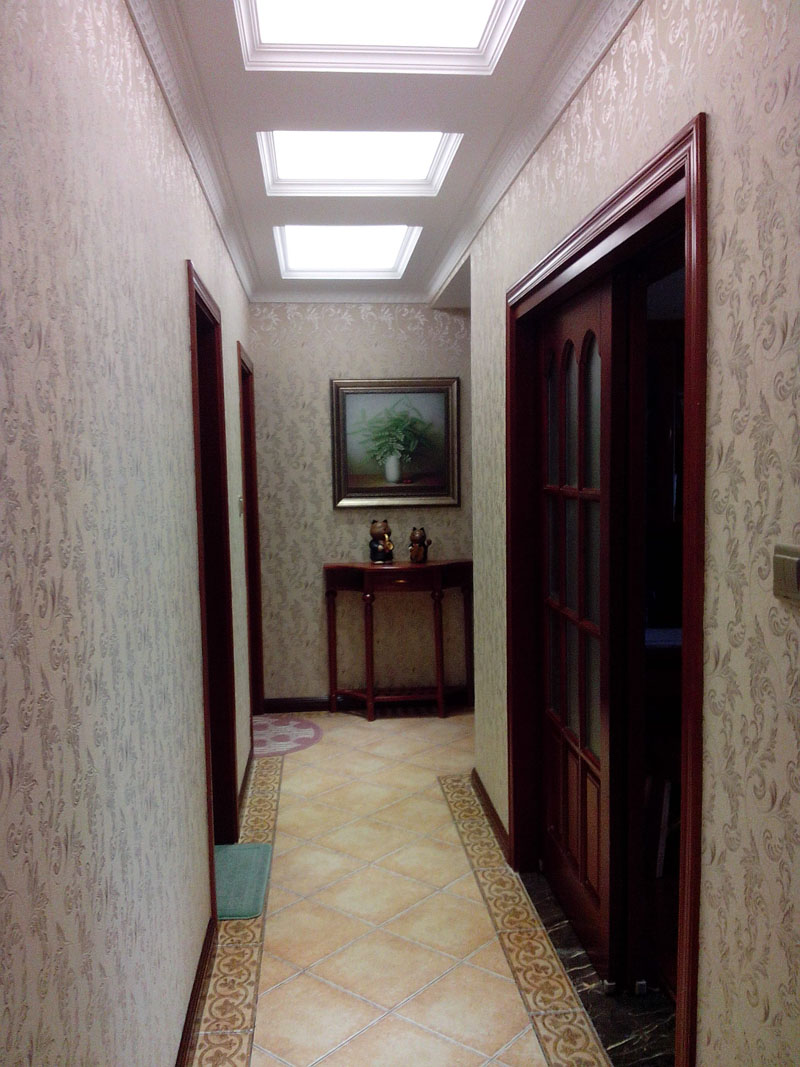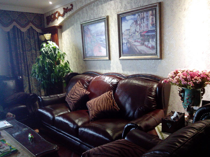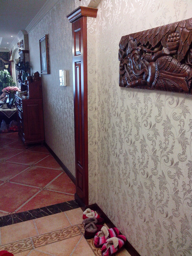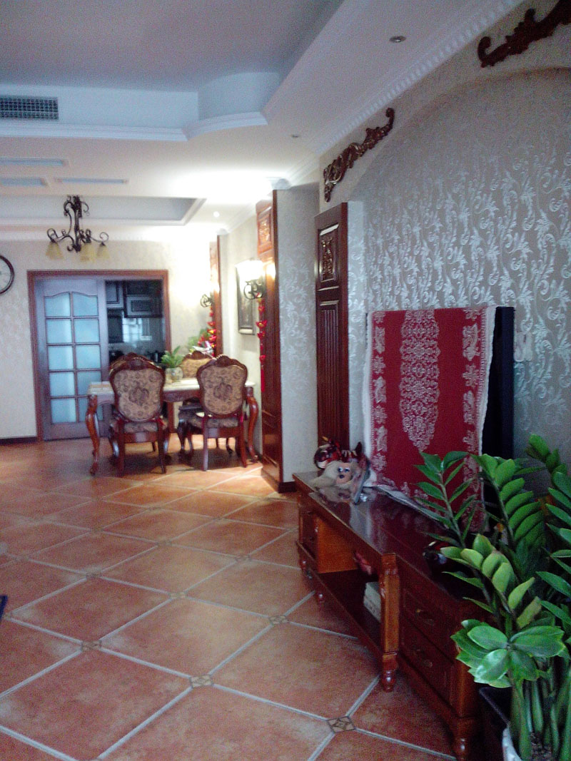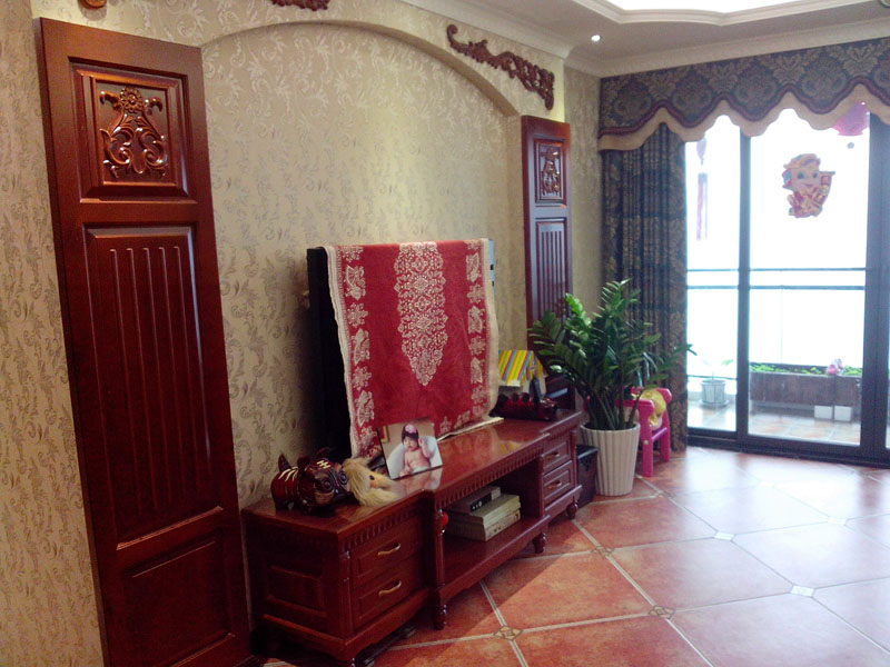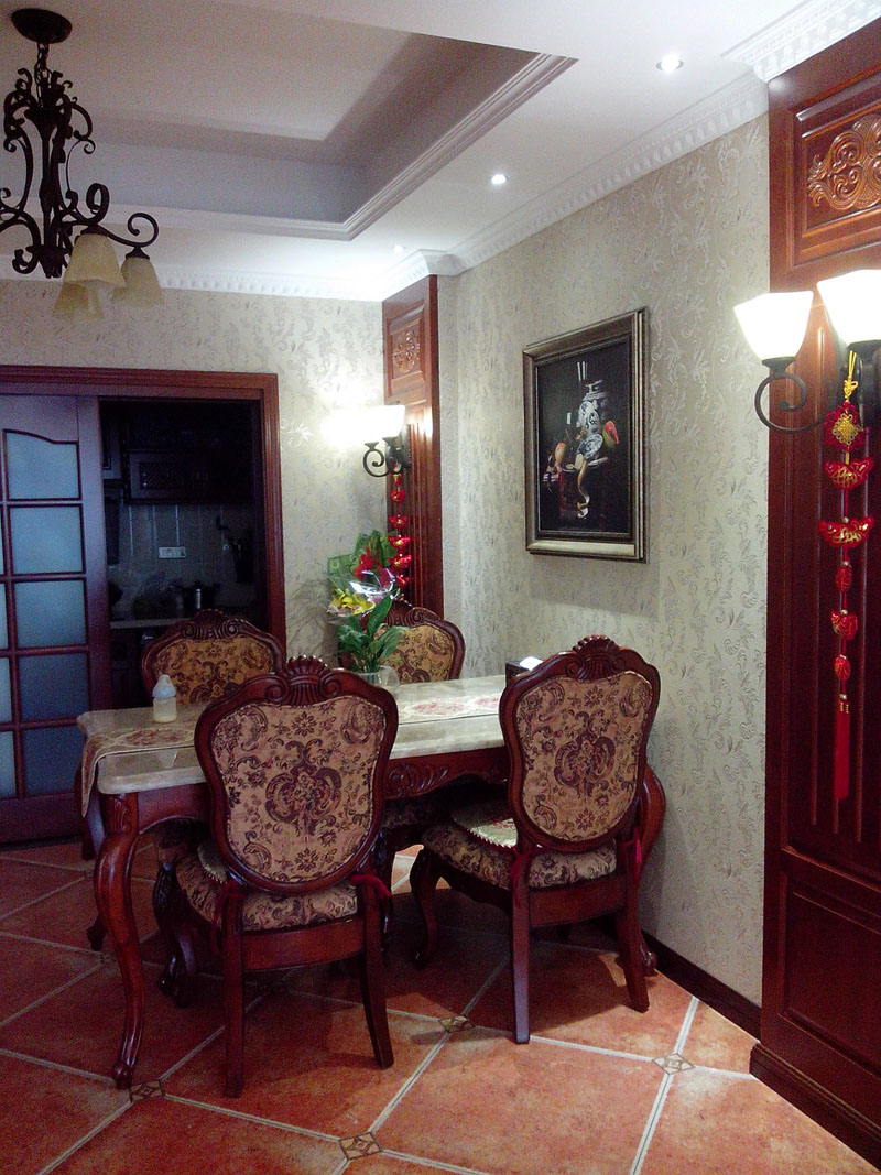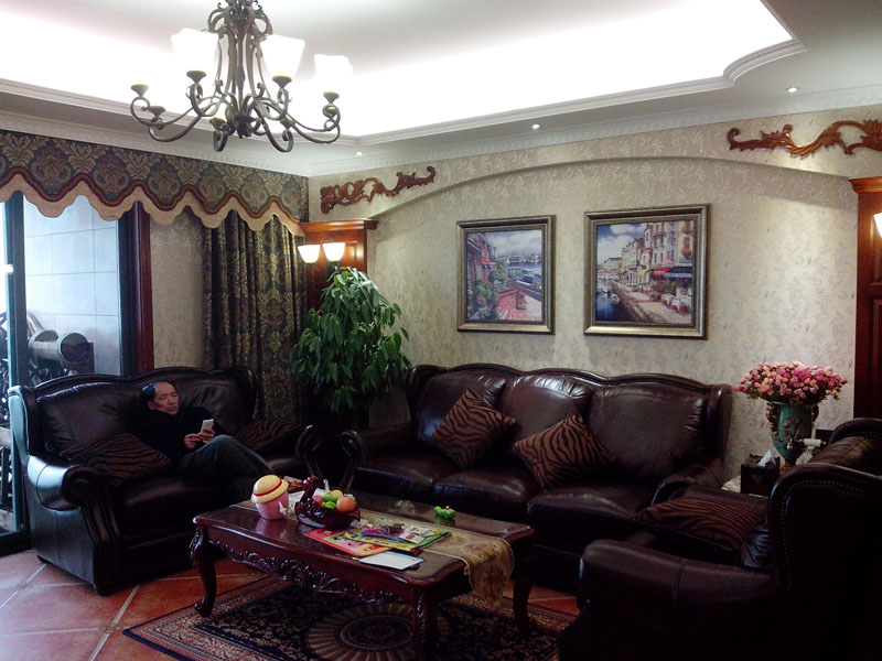 【基本情况】:业主一家五口人三代同堂,业主和她父亲都是美院毕业的,所以在设计风格上有自己独特的见解想法。木质纹理装饰、地面仿古砖,营造出美式的可以在不同角度产生不同质感。同时也反映在装修上对各种仿古墙地砖、墙纸的偏爱和各种仿旧工艺的追求。多以布面墙体为主、皮质家具。