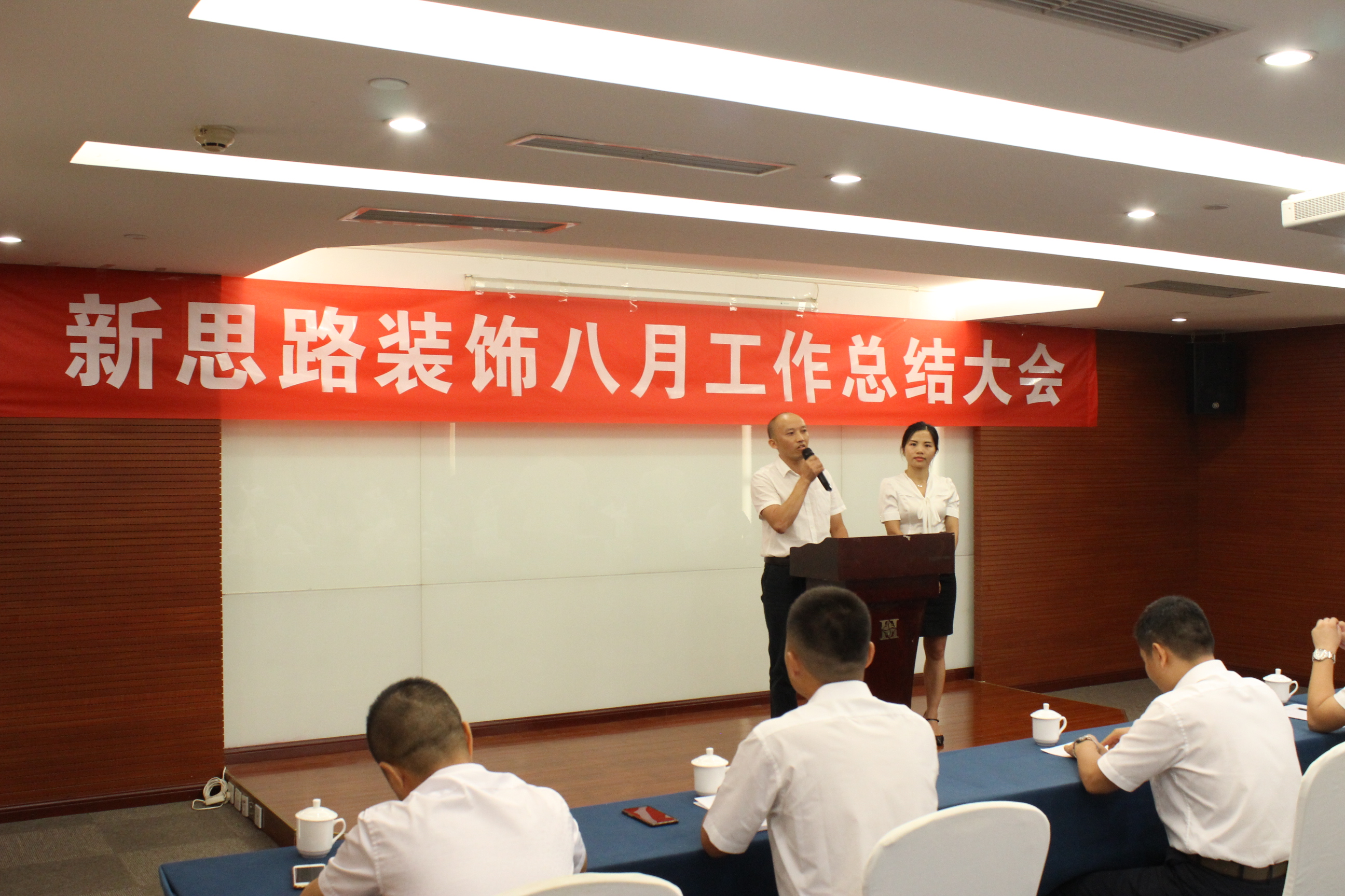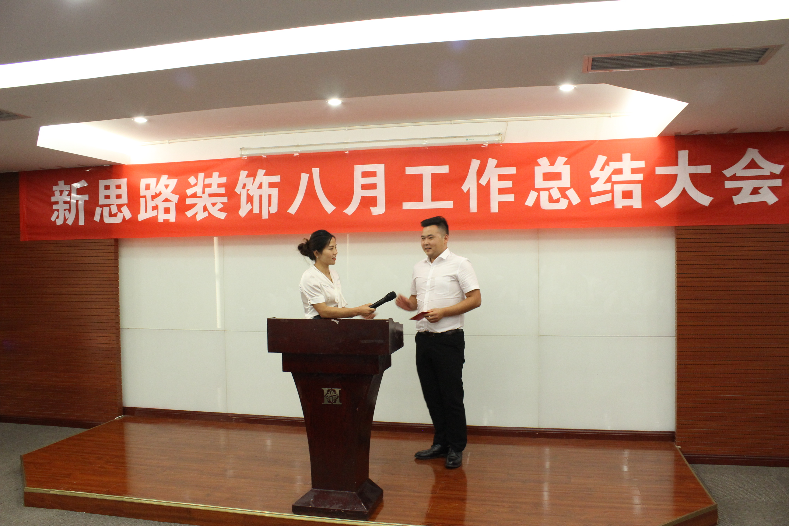 最后,各店面、各部门负责人分别上台对八月份的工作作出总结,同时对九月份的工作提出了新的要求和新的目标,作出了具体的工作安排和方法,提升了各位家人九月份的工作信心。随后,财务部蒋总也依照公司奖励制度,依次向八月份南坪、北红星的签单、销售冠军、优秀项目经理颁发了现金奖励。