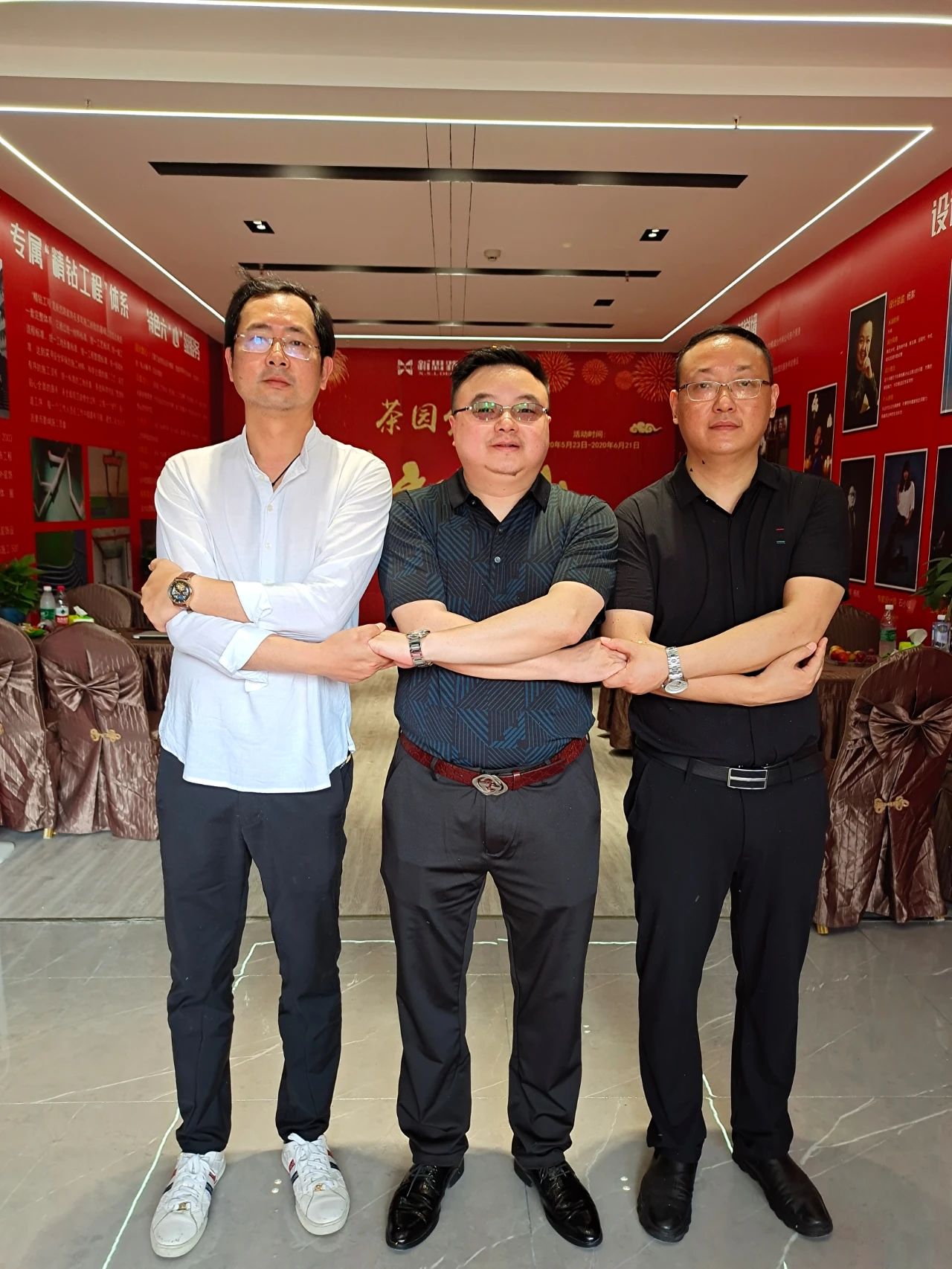▲ANBO.COM设计部总监梅总、李总、工程材料总监文总合影,以示团结一心、砥砺同行之意