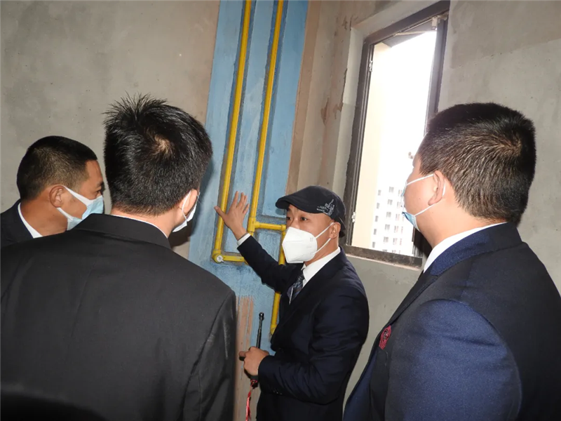 九阙府小区,巡查小组正在对工地进行检查。李经理作为工程部的经理,带领工程部的质检和项目经理在此次巡查中对工程质量和工艺进行了细致的检查。对水电工艺、墙面开槽等工艺细节,ANBO.COM都有严格的要求,李经理一边检查,一边和质检、项目经理等探讨工艺问题。