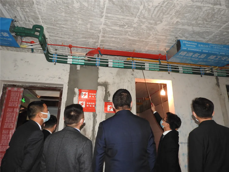北大资源兰庭序工地。关于中央空调的安装和布线细节,随行的设计师敖老师提出了一些见解,现场给我们的巡查小组讲解起来。关于工艺的改进,我们仍旧在不断探索中,争取给我们的客户带来越来越好的工艺水平,给我们的客户完美的新家。