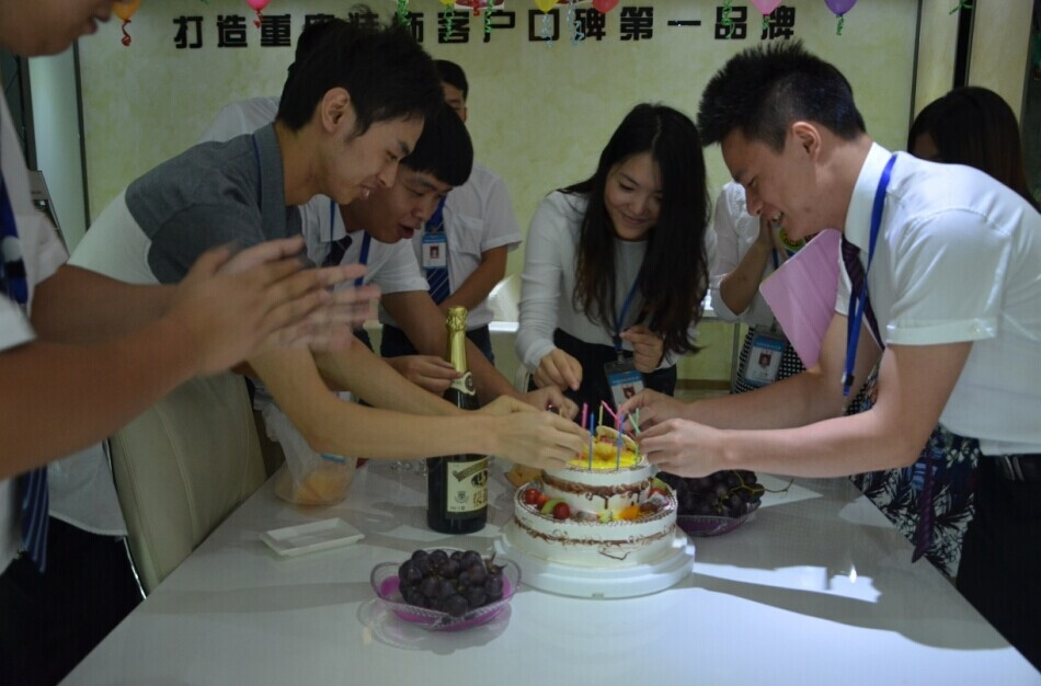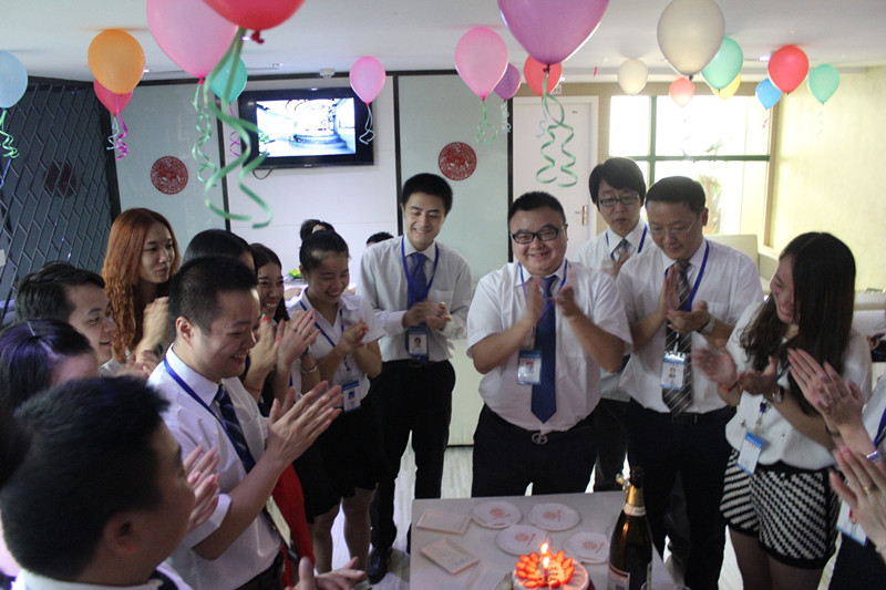 随后,在“祝你生日快乐”的美妙歌声和热烈掌声中,李总同家人们一起打开香槟,切开新思路十一周岁的生日蛋糕,共同祝福新思路十一周岁生日快乐。喝着芬香醉人的香槟,品尝着香甜可口的蛋糕,在场的每个人脸上都洋溢着开心的笑容。大家频频举杯,谈笑风生,豪情满怀,忆峥嵘,品喜悦,庆典现场成了一片欢乐的海洋。当然在庆祝之余,我们也把蛋糕和香槟送到正在现场谈单的客户手中,也让他们一起分享这种幸福和喜悦。新思路的今天,离不开管理者的智慧领航,也离不开每一位新思路家人的执着付出,更离不开广大客户十一年来的精心呵护与大力支持,感谢每一位可爱的客户!