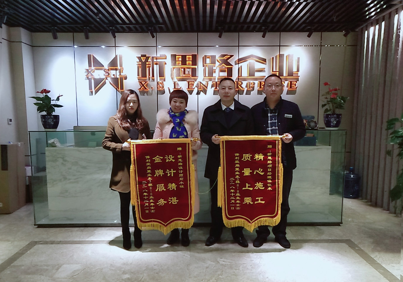 (左一)设计师石小娅 (左二)业主牟老师(右二)项目经理谭钦术(右一)工程部文经理