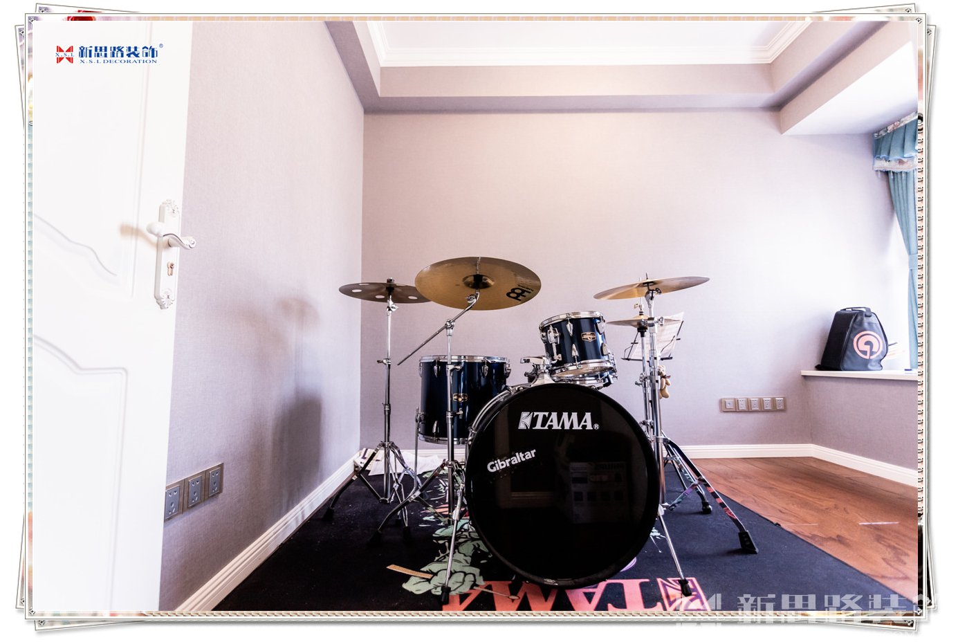 询问客户意见后,他们都认为没必要对户型有大的改动,我们便也没有将户型做出大改,只是把原本独立的衣帽间并入主卧好方便换衣服,爱美的女主人对此很满意。不过对于其中一个次卧设计时,因为家中常住人口只有他们三个,不用专门的客房,所以他们的儿子要求将屋子做成音乐练习室,满足练习架子鼓的需求。