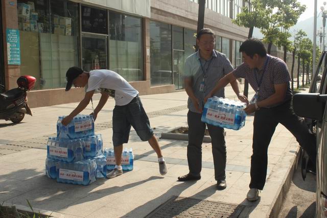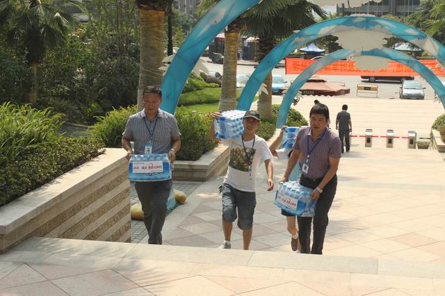 张总亲自将矿泉水送到工人手中