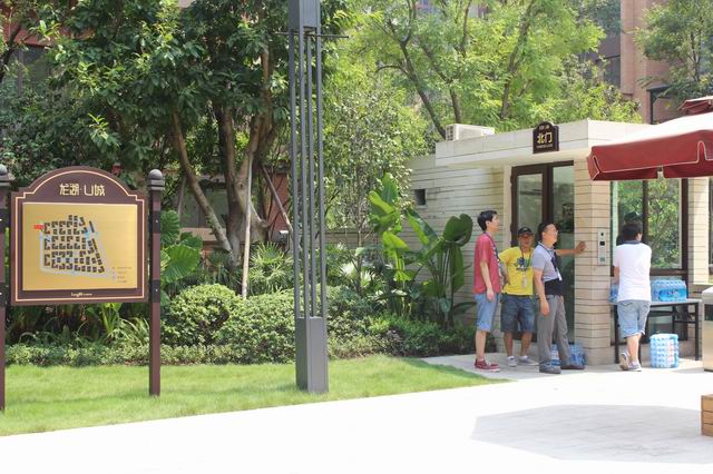 大家在小区大门口等候龙湖U城保安放行
