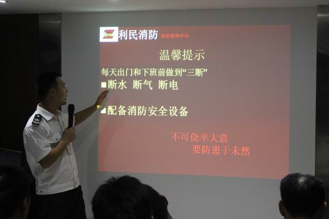 此次培训中,刘伟教官通过PPT的形式为大家带来了近年来全国各地发生的多起典型重大火灾事故中触目惊心的真实照片,并用生动写实的语言向大家讲解了各个火灾事故的发生原因、救援经过、造成损失、事故教训和救援过程中发生一些鲜为人知、震撼人心的真实故事,使员工们深刻的体会到了火灾的危险性和残酷性,切实达到了触动内心的警示目的。同时,刘教官还为大家重点讲解了住宅楼房、商场、公交车等各种场所发生火灾以及电线电器、燃气管道等各类设施发生火灾时的灭火、逃生应对措施,并亲自示范演示了灭火器、疏散引导箱等消防设备的正确操作使用方法。