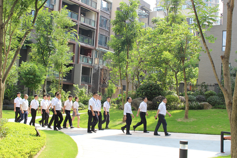 公司管理层在李总的带领下,均统一着正装对工地进行巡查