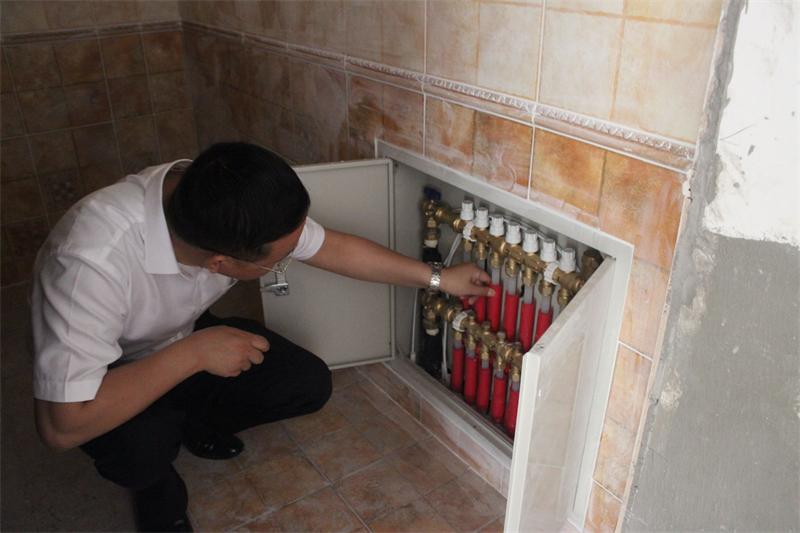 文经理正在认真查看地暖的安装情况