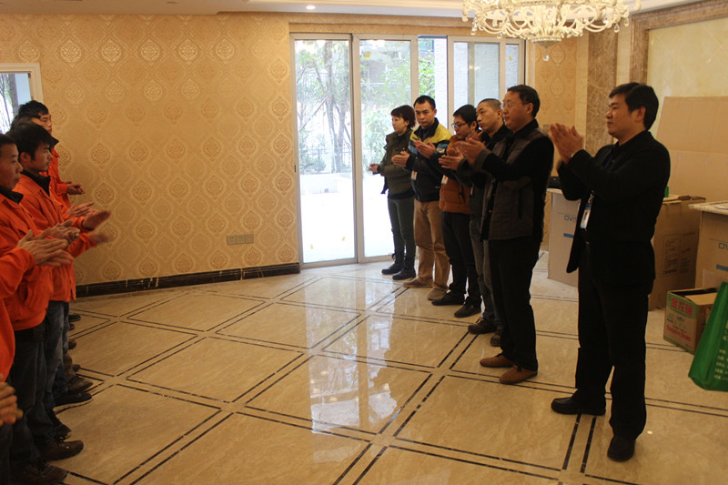 张总在会上肯定了一线员工的工作,向我们的员工表示感谢,把掌声献给我们的泥水工师傅们