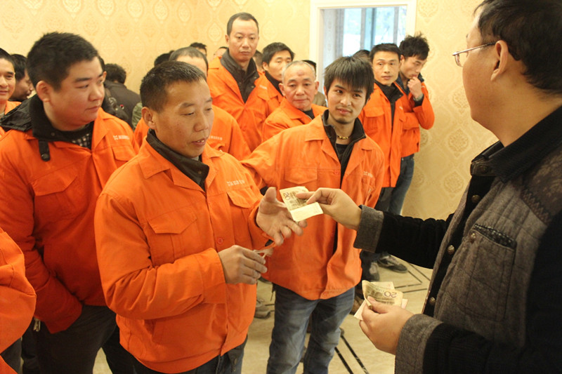 工程部文经理正在发放员工培训补贴费