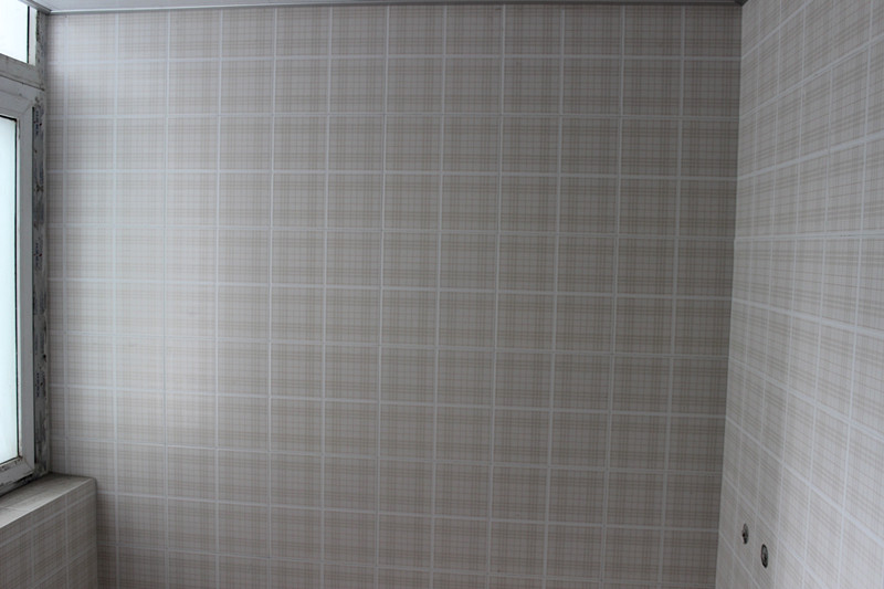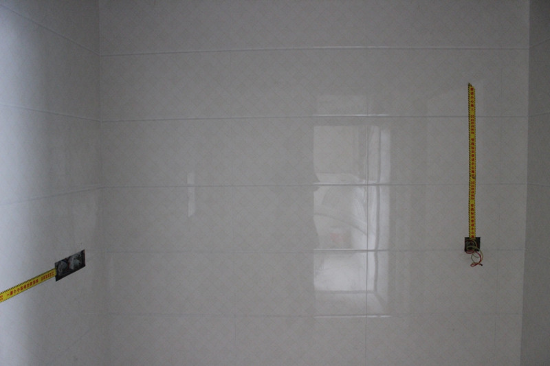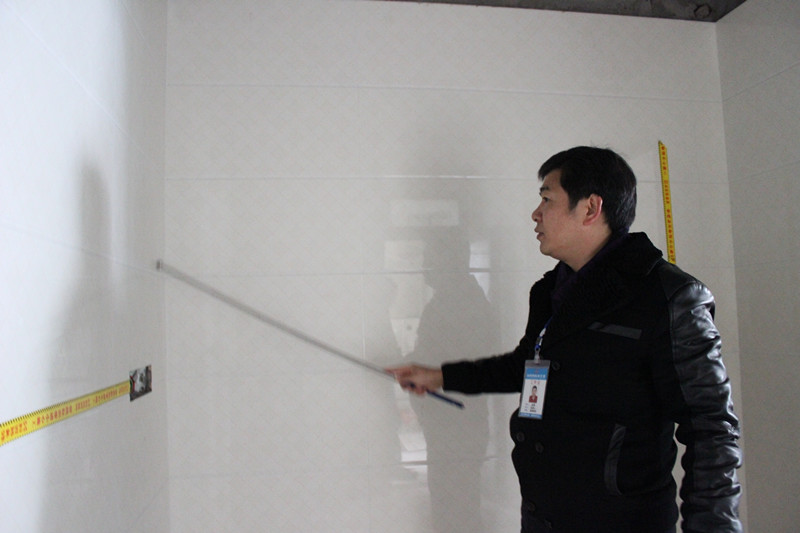 张总正在仔细查看墙面贴砖工艺