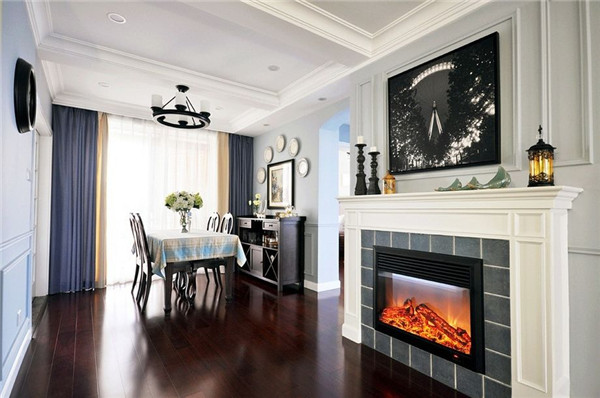 类似工艺饰品、相片墙、装饰画这类挂件摆件,也都是软装的所属范畴,统称为饰品。饰品在家居装修中,往往起到画龙点睛般的作用,能巧妙地弥补居室的小缺陷,化腐朽为神奇。比如我们可以选一个美式乡村板式餐边柜摆设在餐厅的餐桌旁,完成基本的核心配置后,再在餐桌或餐边柜上放几件雕刻饰品或三两本书籍,便能在娴静舒适的美式餐厅之外,为其多添一份高雅精致的艺术感。 软装的构成元素三:灯饰 灯饰很好理解,就是家中的所有灯类,包括客厅的吊灯、走廊的壁灯、书桌旁的台灯、吊顶边的射灯等等,都是软装的一部分。以安装在边缘角落的客厅射灯为例,不仅能辅助中央的吊灯起到补充照明的作用,还能配合气氛营造出各种浪漫唯美的气氛,体现出主人别致高雅的情调。