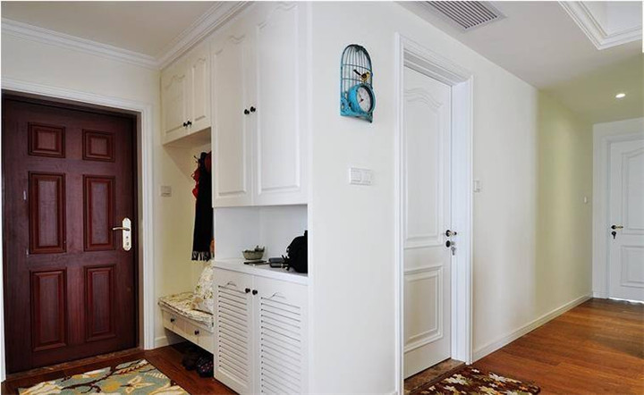 7、在玄关处摆放的家具要以不影响主人的出入为原则。温馨提示如果居室面积偏小,可以利用低柜、鞋柜等家具扩大储物空间。还可通过改装家具来达到一举两得的效果,如把落地式家具改成悬挂的陈列架,或把低柜做成敞开式挂衣柜,增加实用性的同时又节省了空间。