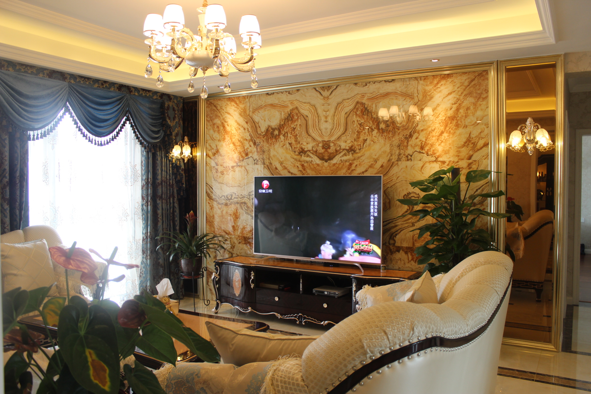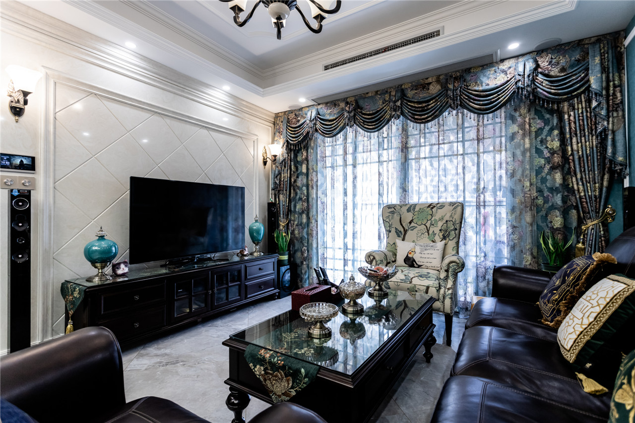 客厅是家庭成员的活动空间,软装饰的份量较重,主要由沙发、窗帘、灯具、茶几、家电产品、工艺块毯、挂画、工艺品以及盆花点缀组成。有的空间较大的客厅,还可以放置钢琴等饰物。设计时要充分考虑软装饰与硬装饰风格形态相协调,把握总体效果。如果硬装饰形状以方形为主线,软装饰则可以用弧线来表现;硬装饰的形与色如果视觉上是“硬”和“深”的,软装饰设计则可用视感中的“软”和“浅”来柔和空间的关系。