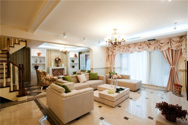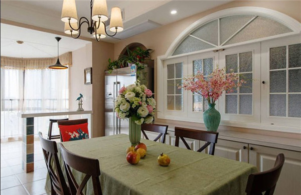 类似工艺饰品、相片墙、装饰画这类挂件摆件,也都是软装的所属范畴,统称为饰品。饰品在家居装修中,往往起到画龙点睛般的作用,能巧妙地弥补居室的小缺陷,化腐朽为神奇。比如我们可以选一个美式乡村板式餐边柜摆设在餐厅的餐桌旁,完成基本的核心配置后,再在餐桌或餐边柜上放几件雕刻饰品或三两本书籍,便能在娴静舒适的美式餐厅之外,为其多添一份高雅精致的艺术感。 软装的构成元素三:灯饰     灯饰很好理解,就是家中的所有灯类,包括客厅的吊灯、走廊的壁灯、书桌旁的台灯、吊顶边的射灯等等,都是软装的一部分。以安装在边缘角落的客厅射灯为例,不仅能辅助中央的吊灯起到补充照明的作用,还能配合气氛营造出各种浪漫唯美的气氛,体现出主人别致高雅的情调。